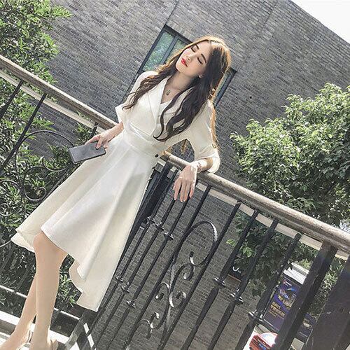 ワンピース ホワイト ポリエステル 五分袖 Vネック ミディ丈 エレガンス ミッドウエスト 清潔感 軽快感 カジュアル ヤングレディース 半袖 夏 20代 30代 40代 くすみカラー RB-R3-09-SA04-0041