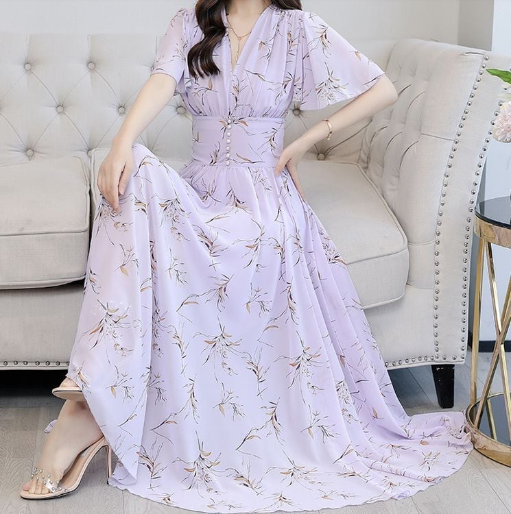 夏 20代 30代 40代 くすみカラー ロングワンピース レディース シフォン 花柄 Aライン リゾート 大きいサイズ RB-R3-05-MT04-0025
