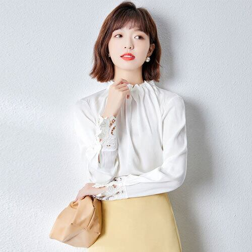 韓国風 ブラウス ホワイト ポリエステル スタンドアップカラー フレンチスタイル風 長袖 清潔感 ゆったり感 ビジカジ ヤングレディース 夏 20代 30代 40代 くすみカラー RB-R3-09-SA04-0048