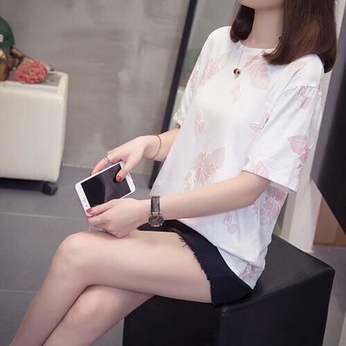 韓国風 Tシャツ ホワイト アクティブ カジュアル ストーリート ヤングレディース ラウンド ゆったり感 半袖 ミディ丈 夏 20代 30代 40代 くすみカラー RB-R3-09-SA04-0049