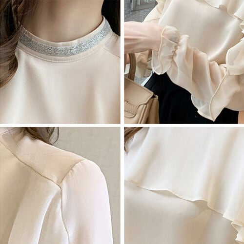 韓国風 ブラウス シフォンシャツ 清潔感 長袖 スタイリッシュ ヤングレディー アクティブ ポリエステル ビジカジ ゆったり感 夏 20代 30代 40代 くすみカラーRB-R3-09-SA04-0061