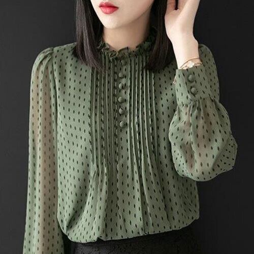 韓国風 ブラウス レディース きれいめ フレアブラウス オシャレ シフォンシャツ 長袖 トップス ドット柄 大人 通勤 ゆったり 夏 20代 30代 40代 くすみカラー RB-R3-09-SA04-0064