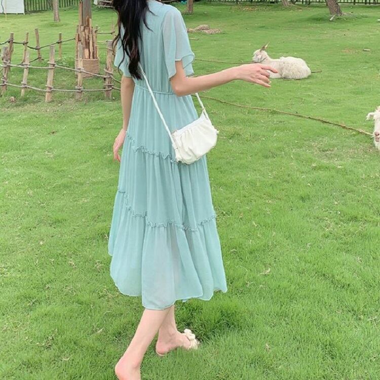 夏 20代 30代 40代 くすみカラー ティアードワンピース レディーフリル ビーチ 通勤 通学 エレガント リゾート RB-R3-05-MT04-0050