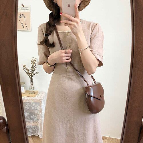 ワンピース レディース 半袖 フレアスカート ミドル丈 きれいめ オシャレ 通勤 お出かけ 大 人 夏 20代 30代 40代 くすみカラー RB-R3-16-SA04-0007