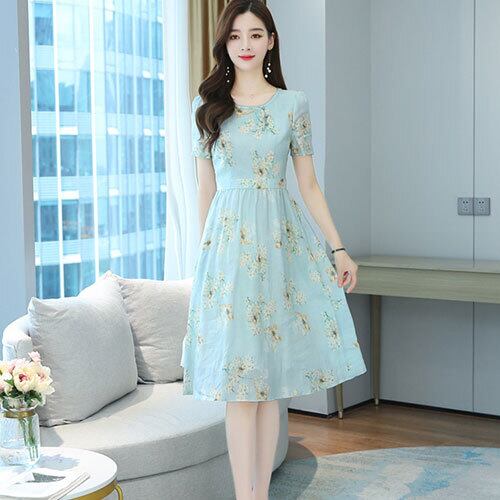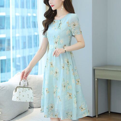 ワンピース レディース ラウンドネック ミドル丈 半袖 きれいめ オシャレ 通勤 結婚式 お出かけ 大人 夏 20代 30代 40代 くすみカラー RB-R3-16-SA04-0008