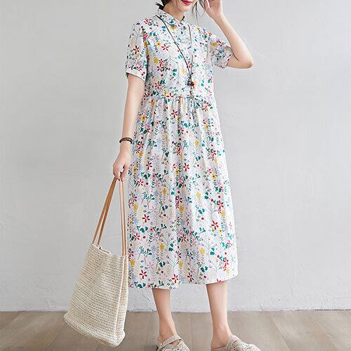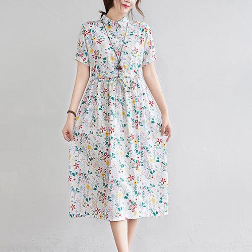 ワンピース レディース 半袖 ミドル丈 花柄 カジュアル きれいめ オシャレ 通勤 お出かけ 大人 夏 20代 30代 40代 くすみカラー RB-R3-16-SA04-0011