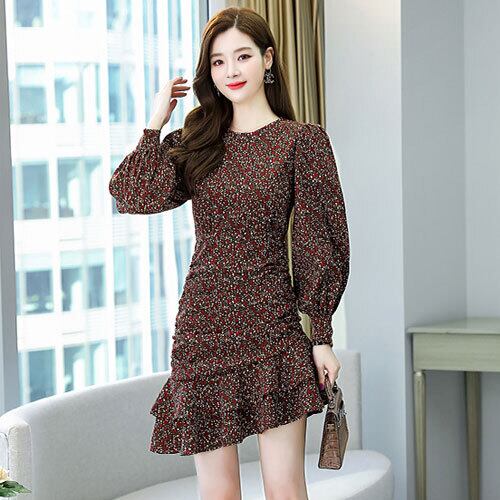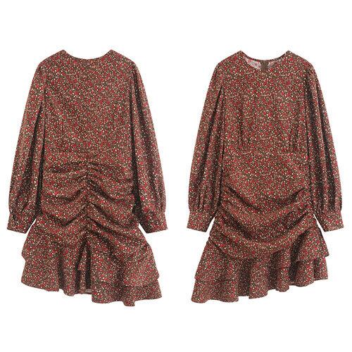 ワンピース レディース 新作 長袖 花柄 ラウンドネック きれいめ オシャレ 通勤 結婚式 お出かけ 大人 夏 20代 30代 40代 くすみカラー RB-R3-16-SA04-0016
