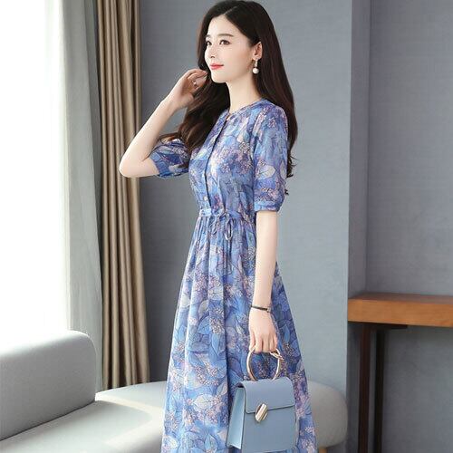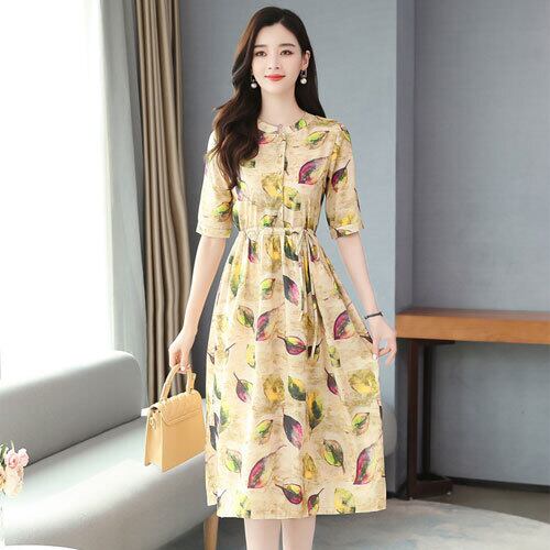 ワンピース レディース 半袖 ミドル丈 きれいめ 花葉柄 オシャレ 通勤 結婚式 お出かけ 大人 夏 20代 30代 40代 くすみカラー RB-R3-16-SA04-0017