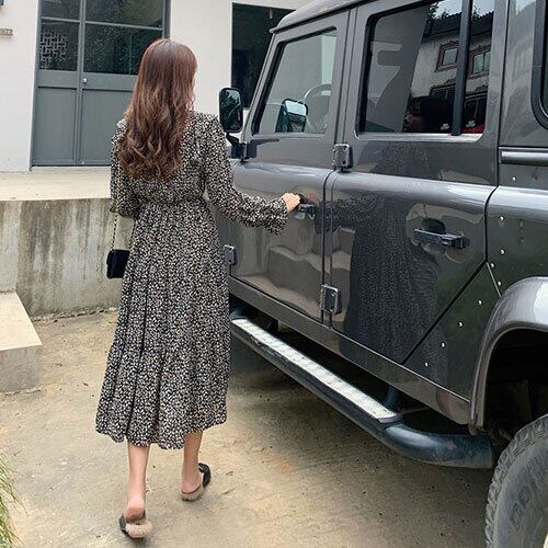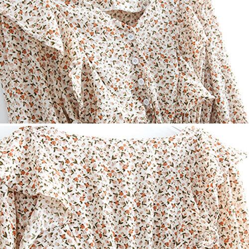 ワンピース レディース 花柄 フリル 新作 長袖 きれいめ シフォン オシャレ 通勤 結婚式 お出かけ 大人 夏 20代 30代 40代 くすみカラー RB-R3-16-SA04-0038