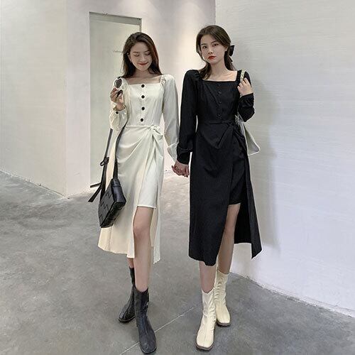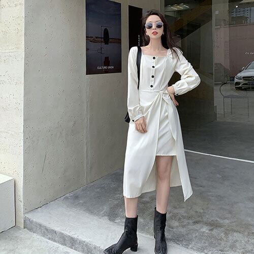 ワンピース ホワイト ブラック 無地 スクエアネック Aライン 新作 長袖 きれいめ オシャレ 通勤 お出かけ 大人 夏 20代 30代 40代 くすみカラー RB-R3-16-SA04-0042