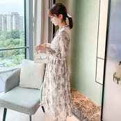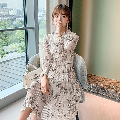 ワンピース アプリコット ペイズリー柄 フリル リボン 新作 長袖 きれいめ シフォン オシャレ 通勤 結婚式 お出かけ 大人 夏 20代 30代 40代 くすみカラー RB-R3-16-SA04-0044