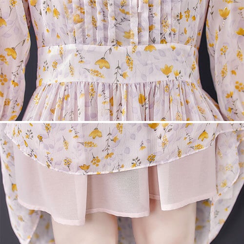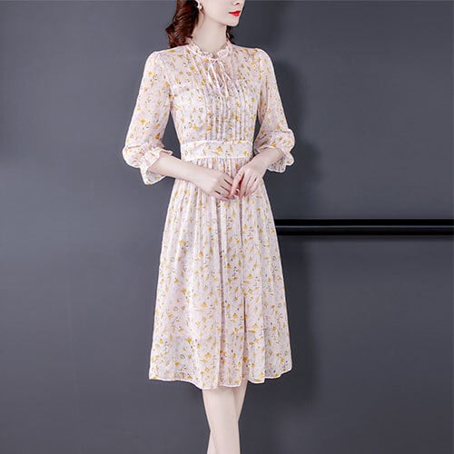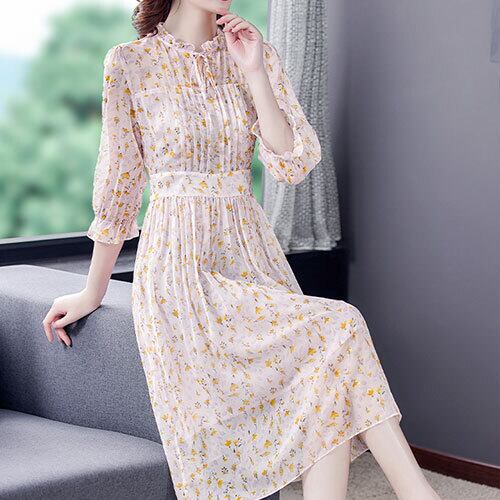 ワンピース レディース シフォン ピンク 花柄 レトロ 新作 長袖 きれいめ オシャレ 結婚式 お出かけ 可愛い 夏 20代 30代 40代 くすみカラー RB-R3-16-SA04-0046