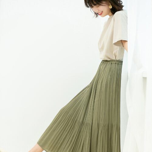 スカート ブラック レザーピンク ライトグリーン アプリコット 薄手 ミディ丈 ビジカジスタイル 軽快感 ポリエステル カジュアル 爽やか Aライン 清涼感 アクティブ ヤングレディー ハイウエスト 夏 20代 30代 40代 くすみカラー RB-R3-04-SA04-0005