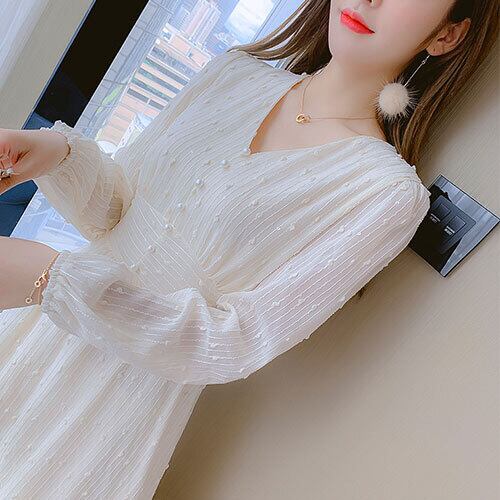ワンピース シフォン ホワイト Vネック 新作 長袖 きれいめ オシャレ 通勤 結婚式 お出かけ 大人 夏 20代 30代 40代 くすみカラー RB-R3-16-SA04-0047