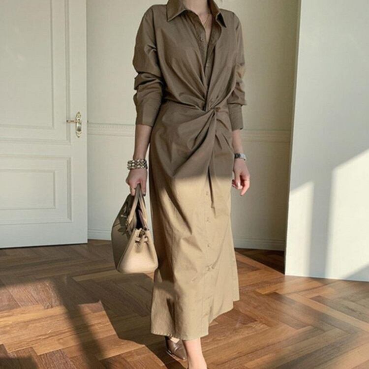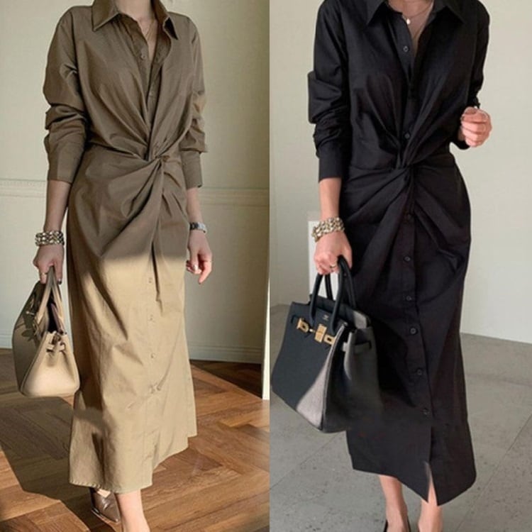 夏 20代 30代 40代 くすみカラー ワンピース レディース ワンピース シャツワンピース ロング丈 通勤 通学 お出かけ RB-R3-08-MT04-0002
