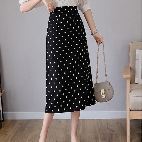 レディース ボトムス スカート ブラック アプリコット ドット柄 ハイウエスト フレア スリット おしゃれ 大きいサイズ 大人 着痩せ ゆったり 夏 20代 30代 40代 くすみカラー RB-R3-04-SA04-0028