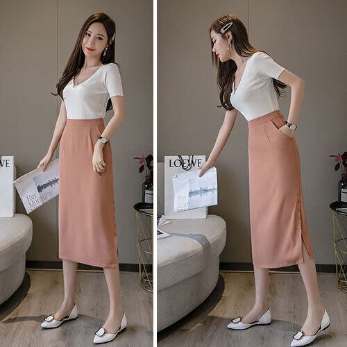 レディース ボトムス スカート タイト 無地 グリーン ブラック ピンク ハイウエスト スリット おしゃれ 大きいサイズ 大人 着痩せ ゆったり 夏 20代 30代 40代 くすみカラー RB-R3-04-SA04-0029