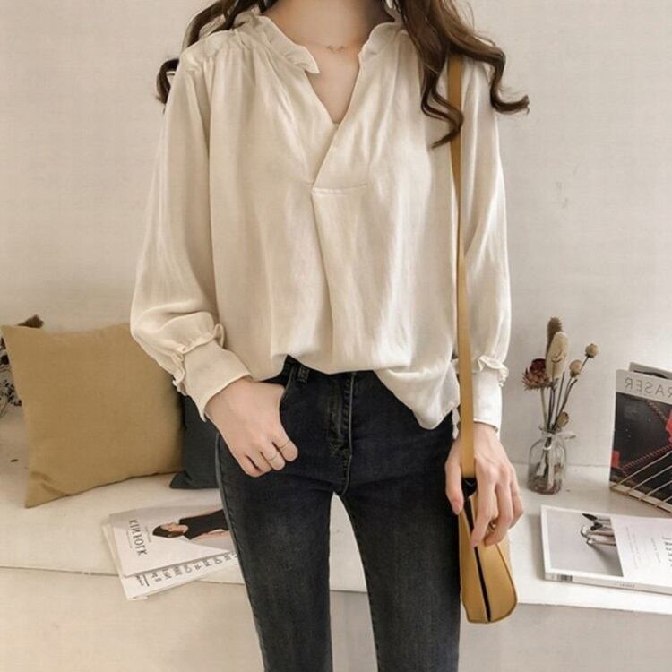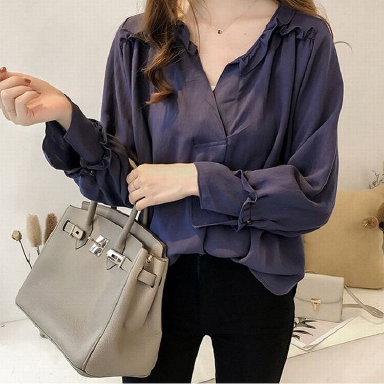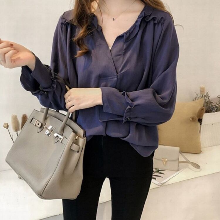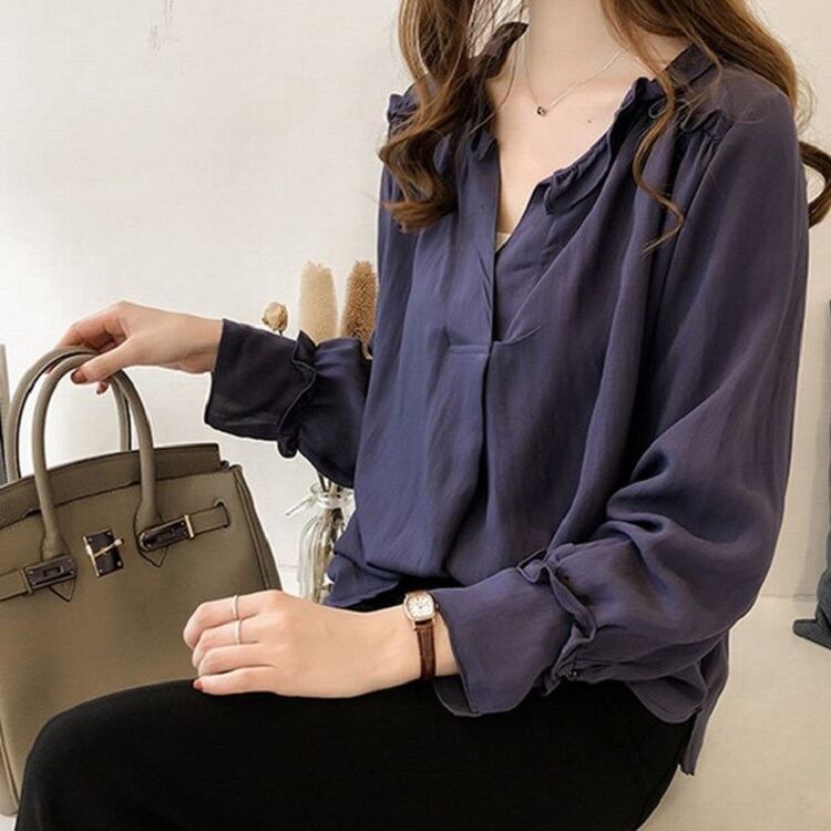 夏 20代 30代 40代 くすみカラー ブラウス レディース 長袖 トップス シャツ Vネック 大きいサイズ 通勤 通学 お出かけ RB-R3-08-MT04-0007