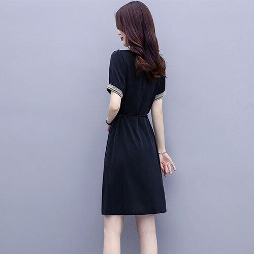 ワンピース レディース ブルー ブラック ポリエステル 膝丈 半袖 ドレス Aライン 無地 着痩せ 結婚式 通勤 OL お出かけ 春 夏 新作 夏 20代 30代 40代 くすみカラー RB-R3-04-SA04-0050