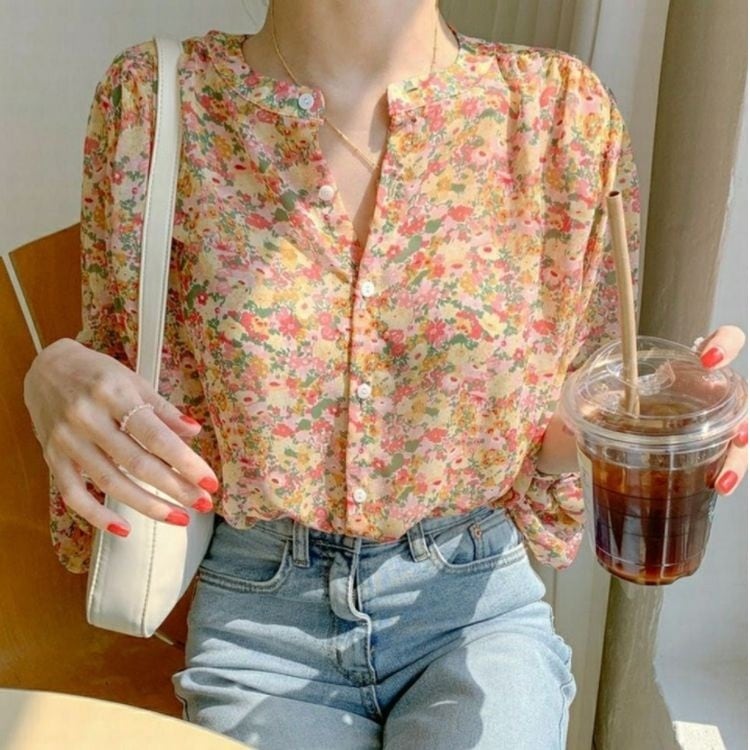 夏 20代 30代 40代 くすみカラー ブラウス レディース ブラウス 花柄シフォンシャツ 長袖 Vネック 通勤 通学 RB-R3-08-MT04-0027