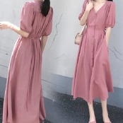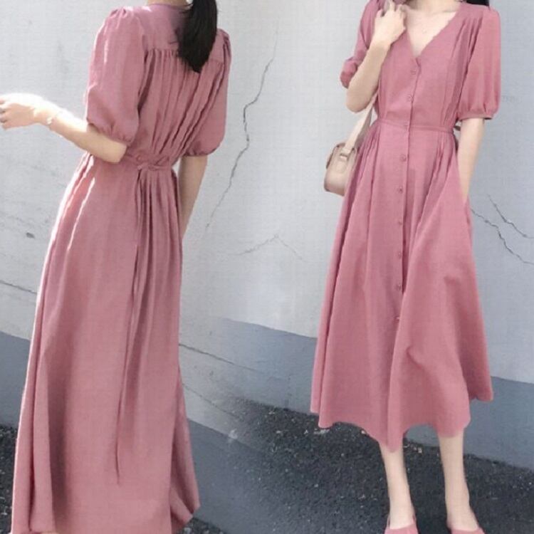 夏 20代 30代 40代 くすみカラー ロングワンピース レディース 半袖 Vネック RB-R3-08-MT04-0028