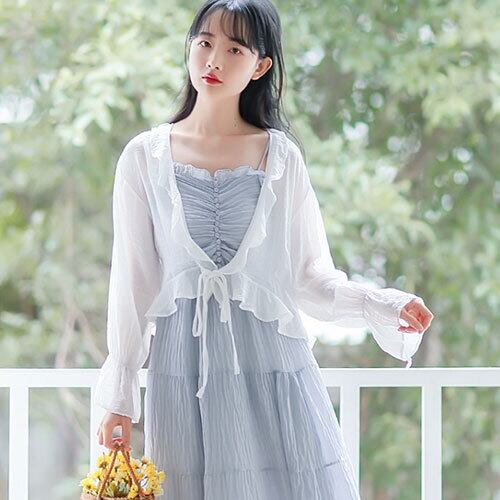 カーディガン ボレロ レディース シフォン 薄手 白 レトロ 姫系 森ガール 日焼け防止 夏 20代 30代 40代 くすみカラー RB-R3-04-SA04-0064