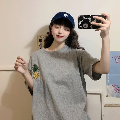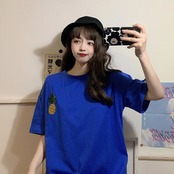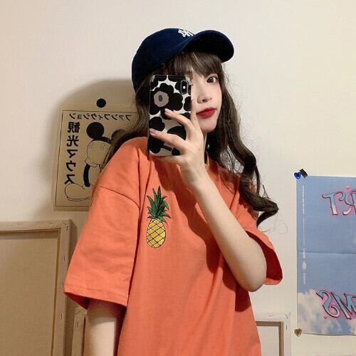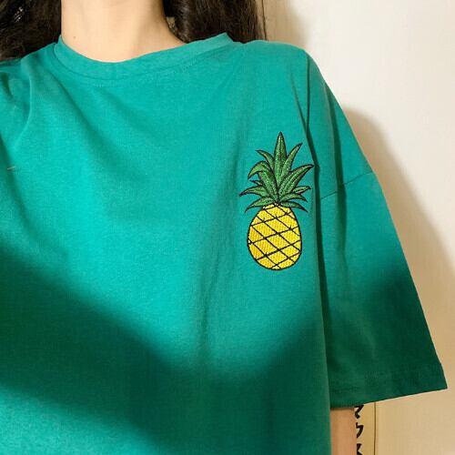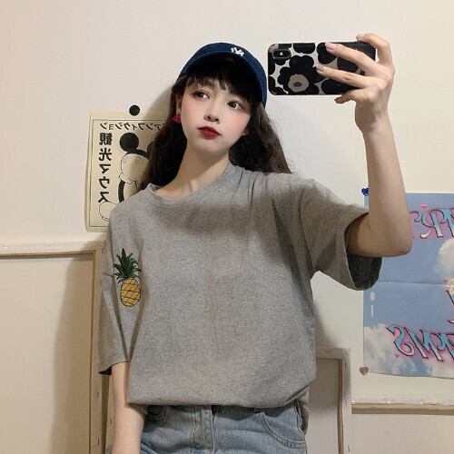 韓国風 Tシャツ レディース 半袖 フルーツ刺繍 クルーネック 爽やか ゆったり アクティブ 夏 20代 30代 40代 くすみカラー RB-R3-04-SA04-0076