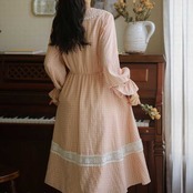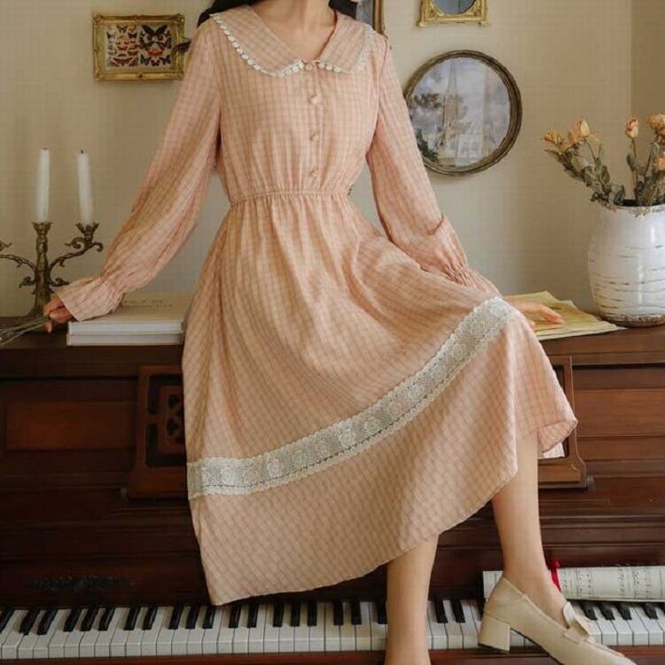 夏 20代 30代 40代 くすみカラー ワンピース プリーツチェック柄 レディース 長袖 ロング丈 Aラインお呼ばれ RB-R3-08-MT04-0049