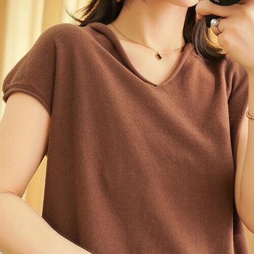 韓国風 Tシャツ レディース Vネック 10カラー ゆったり ニット 薄手 無地 カットソー 通勤 お洒落 カラバリ 夏 20代 30代 40代 くすみカラー RB-R3-04-SA04-0088