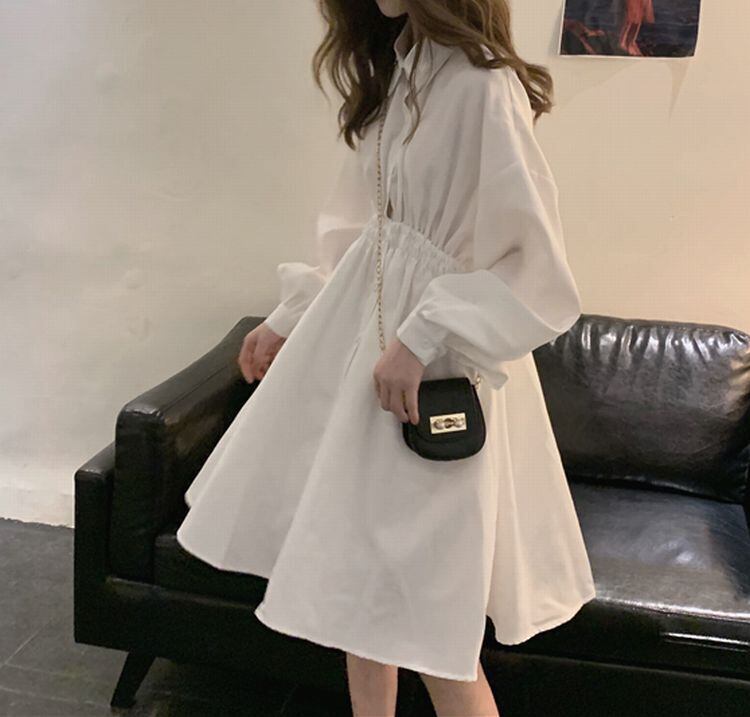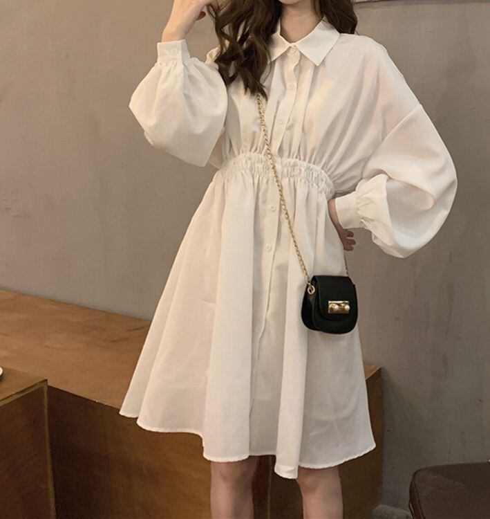 夏 20代 30代 40代 くすみカラー シャツワンピース 長袖 レディース ウエストマーク チュニックワンピ ボリューム袖 ミニワンピース RB-R3-10-MT04-0010
