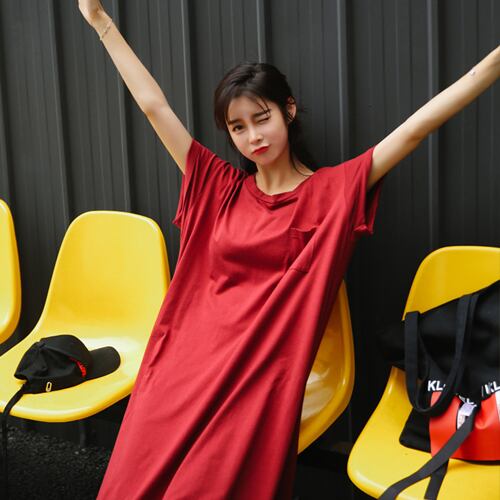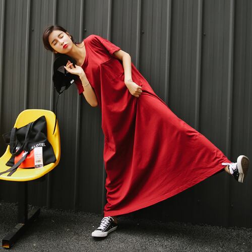 韓国風 ワンピース マキシ丈ワンピ レディース 夏 ロング丈 半袖 カジュアルワンピ ラウンドネック プルオーバー おしゃれ 20代 30代 40代 RB-R3-11-TK05-0005