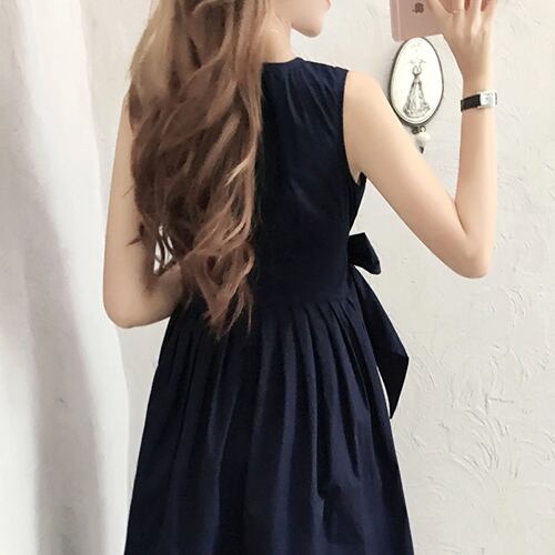 ワンピース レディース 夏 ミモレ丈ワンピース 半袖 無地 シンプル リボン 韓国風 オシャレ 上品 大人 30代 40代 RB-R3-11-TK05-0008