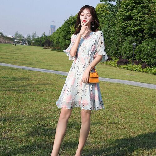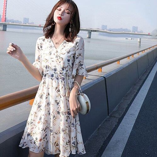 ワンピース 2色 半袖 ミドル丈 花柄 Vネック きれいめ 大人可愛い 夏 20代 30代 40代 くすみカラー RB-R3-06-SA04-0002