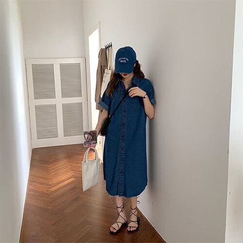 ワンピース 半袖 デニム シャツワンピ ミドル丈 キレイめ 夏 20代 30代 40代 くすみカラー RB-R3-06-SA04-0009