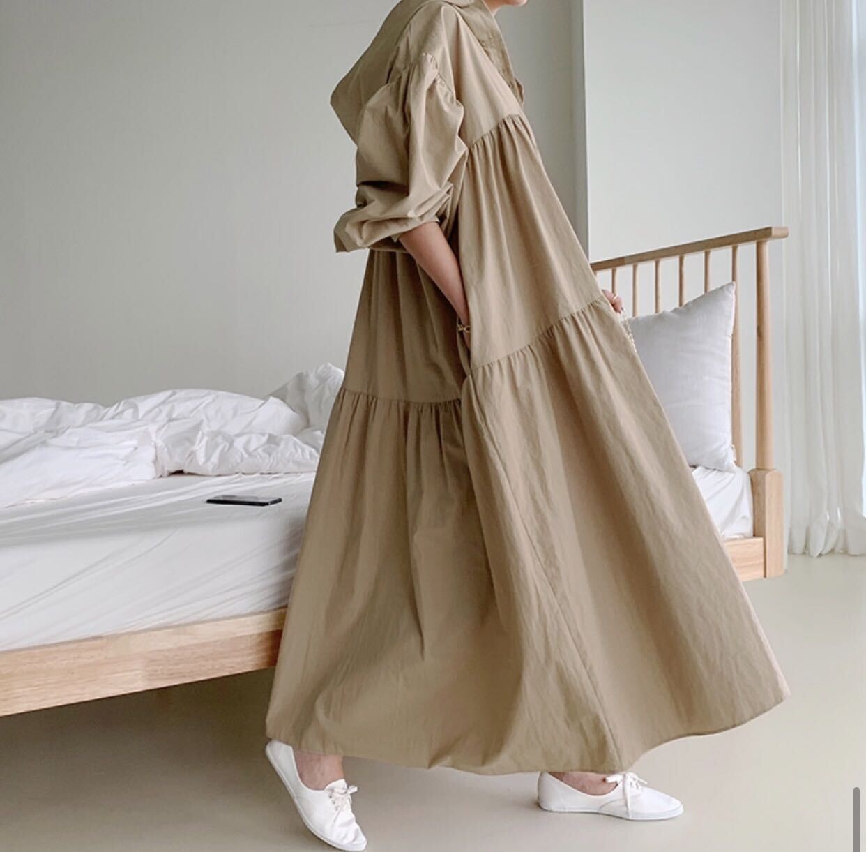 20代 30代 40代 夏 くすみカラー シャツワンピース マキシワンピース レディース フード付き 綿 長袖 ゆったり RB-R3-13-CN05-0004