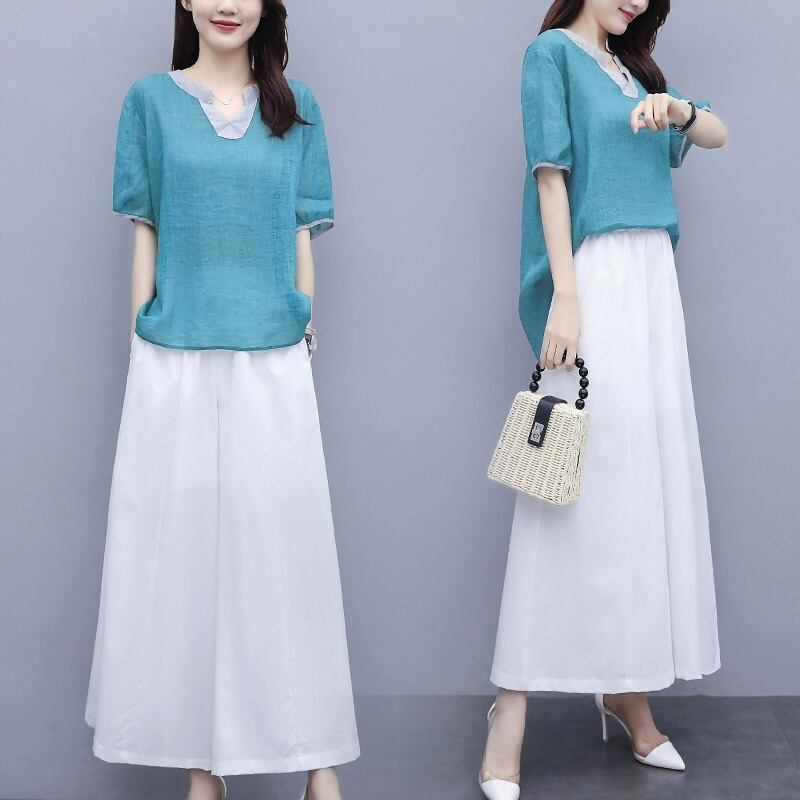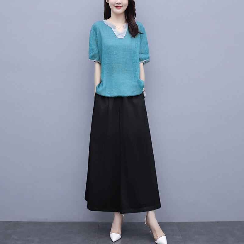 夏セットアップ レディース ブラウス 麻 リネン パンツスーツ ワイドパンツ 夏コーデ 2点セット 入学式 服 母 シフォン おしゃれ オフィス 通勤 OL 40代RB-R3-01-NK05-0013