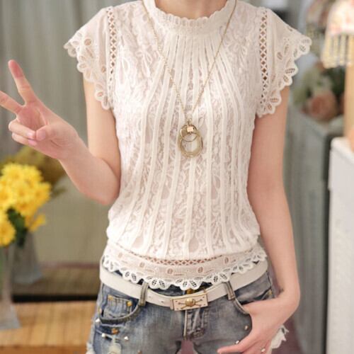 韓国風 ブラウス ホワイト レース 半袖 スリム オシャレ トップス 夏 20代 30代 40代 くすみカラー RB-R3-06-SA04-0012