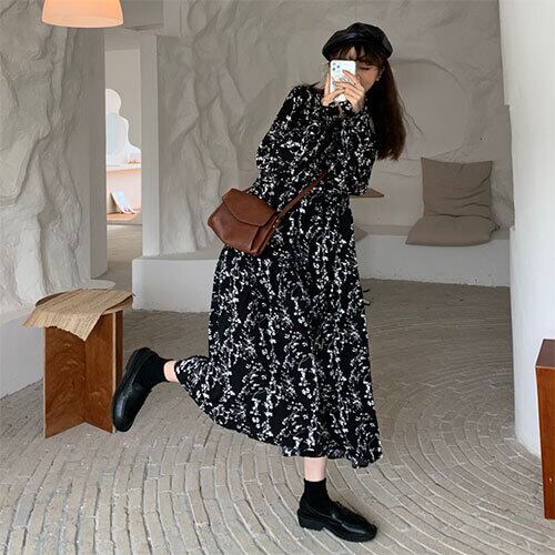 韓国風 ワンピース 2色 Vネック ミドル丈 フレアスカート きれいめ 花柄 夏 20代 30代 40代 くすみカラー RB-R3-06-SA04-0014