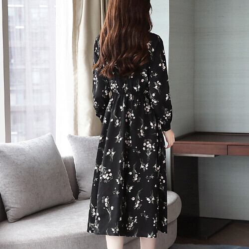 ワンピース レディース ミドル丈 長袖 ラウンドネック オシャレ 上品 花柄 大人 可愛い 着痩せ きれいめ 通勤 夏 20代 30代 40代 くすみカラー RB-R3-06-SA04-0044