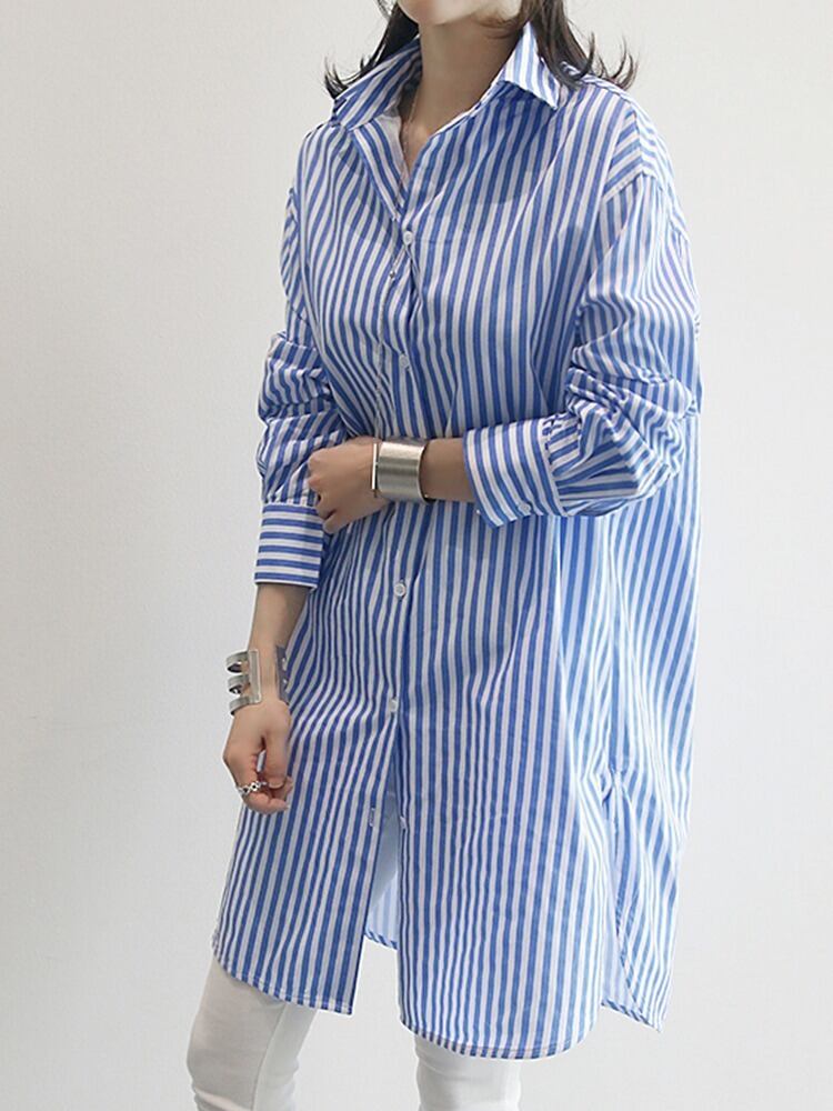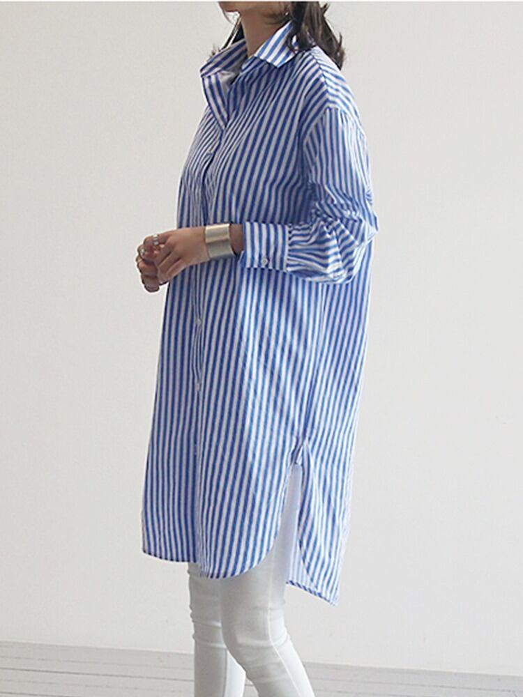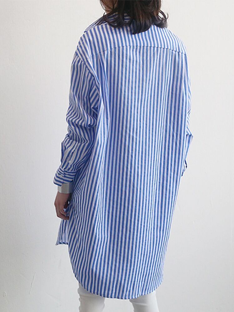 ブルー カーキーシャツワンピレディースシャツロングシャツワンピースストライプレディースワンピース体型カバーRB-R3-01-NK05-0023