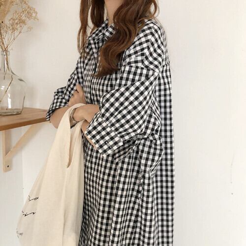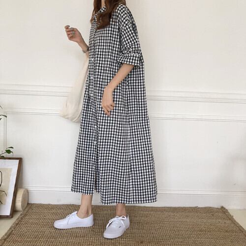 韓国風 ワンピース レディース シャツワンピース マキシ丈 半袖 大きいサイズ 着痩せ チェック柄 夏 20代 30代 40代 くすみカラー RB-R3-06-SA04-0059