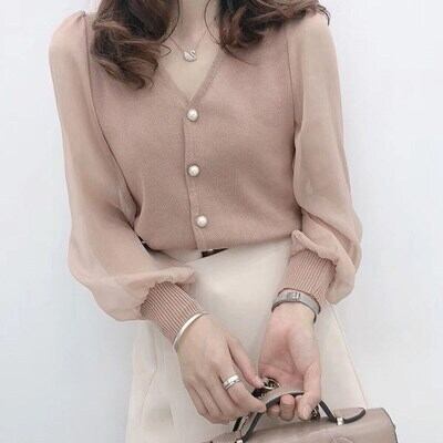 シャツ ブラウス レディース 夏 トップス Vネック 長袖 無地 パフスリーブ 通勤 おしゃれ 30代 40代 RB-R3-11-TK05-0031
