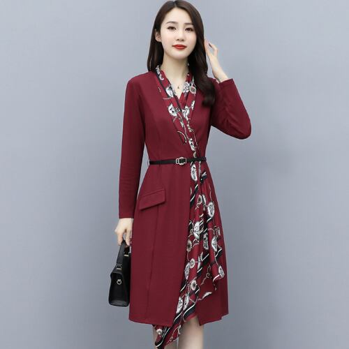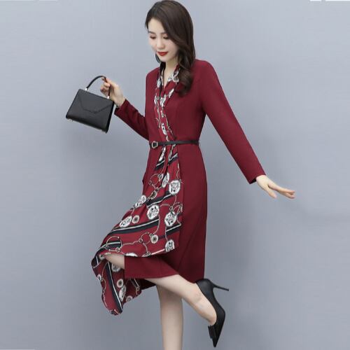 ワンピース 2色 長袖 ミドル丈 プリント 夏 20代 30代 40代 くすみカラー RB-R3-06-SA04-0069