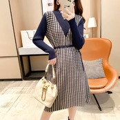 ワンピース 長袖 ミドル丈 ハーフハイカラー 千鳥格子 夏 20代 30代 40代 くすみカラー RB-R3-06-SA04-0070