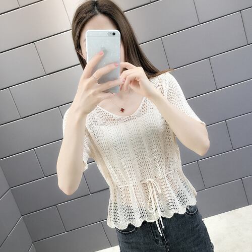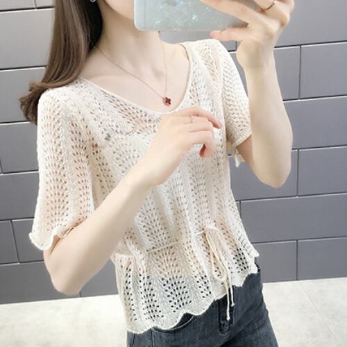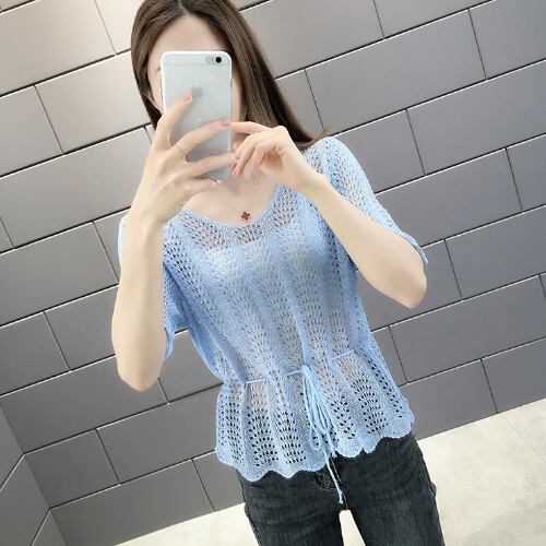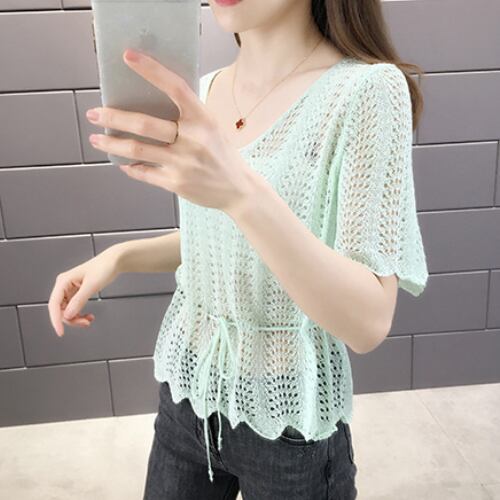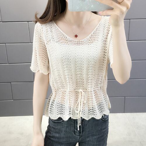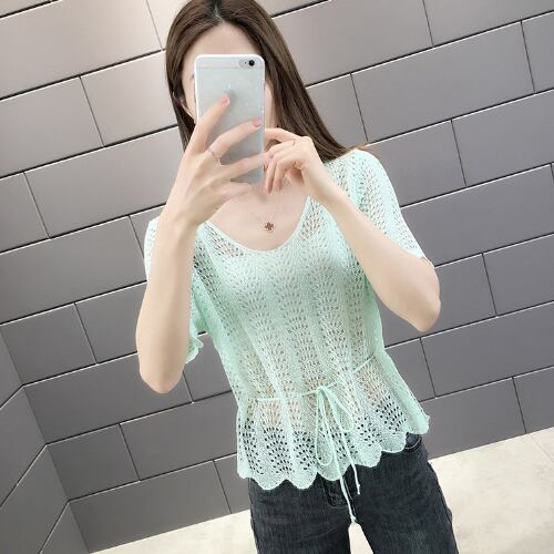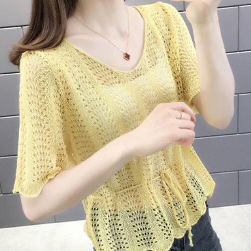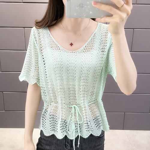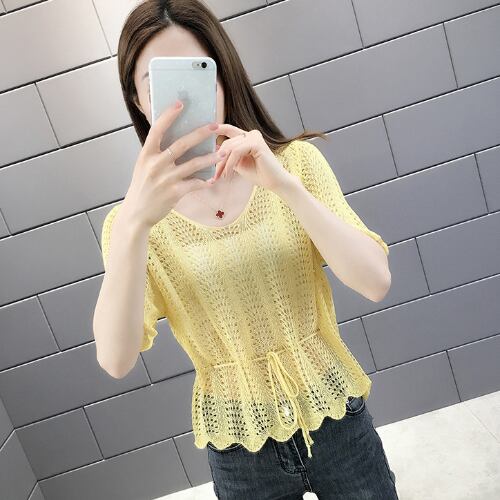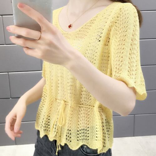 韓国風 ブラウス ベージュ イエロー ブルー ライトグリーン 半袖 カジュアル 薄手 アクティブ 清潔感 ヤングレディ 爽快感 ミディ丈 軽快感 ウエストベルトすっきり 夏 20代 30代 40代 くすみカラー RB-R3-06-SA04-0081