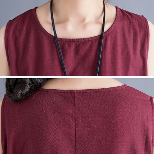 ワンピース レディース ロング丈 ノースリーブ クルーネック マキシ 大きめ ゆったり コットン リネン 4カラー 夏 20代 30代 40代 くすみカラー RB-R3-06-SA04-0087