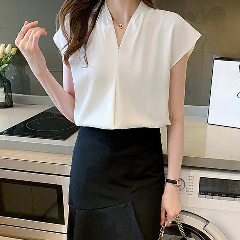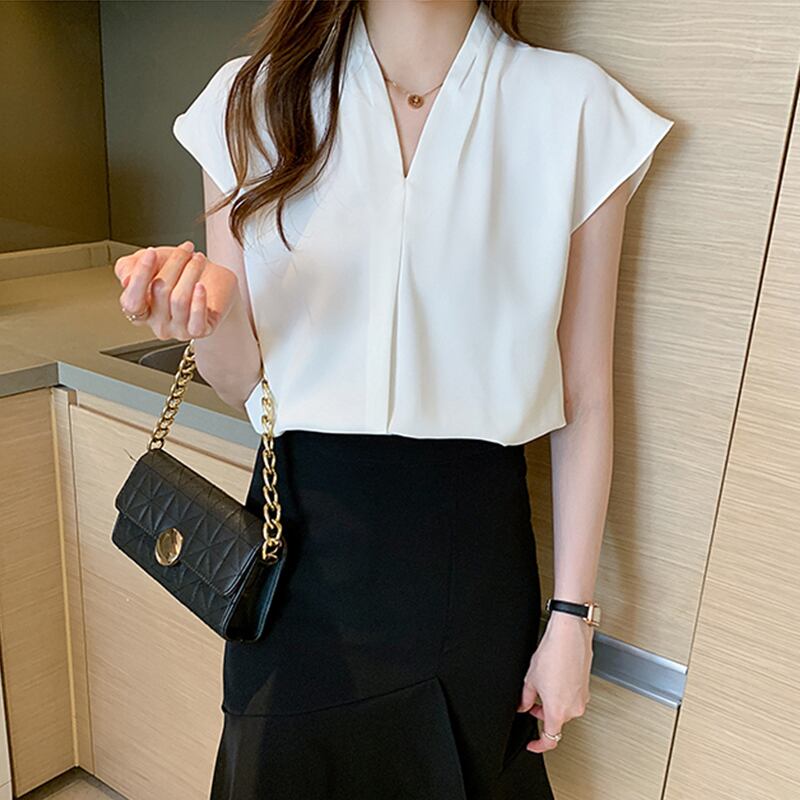 韓国風 シャツ ブラウス レディース 夏 トップス Vネック 半袖 無地 シンプル 通勤 OL きれいめ 30代 40代 RB-R3-11-TK05-0033