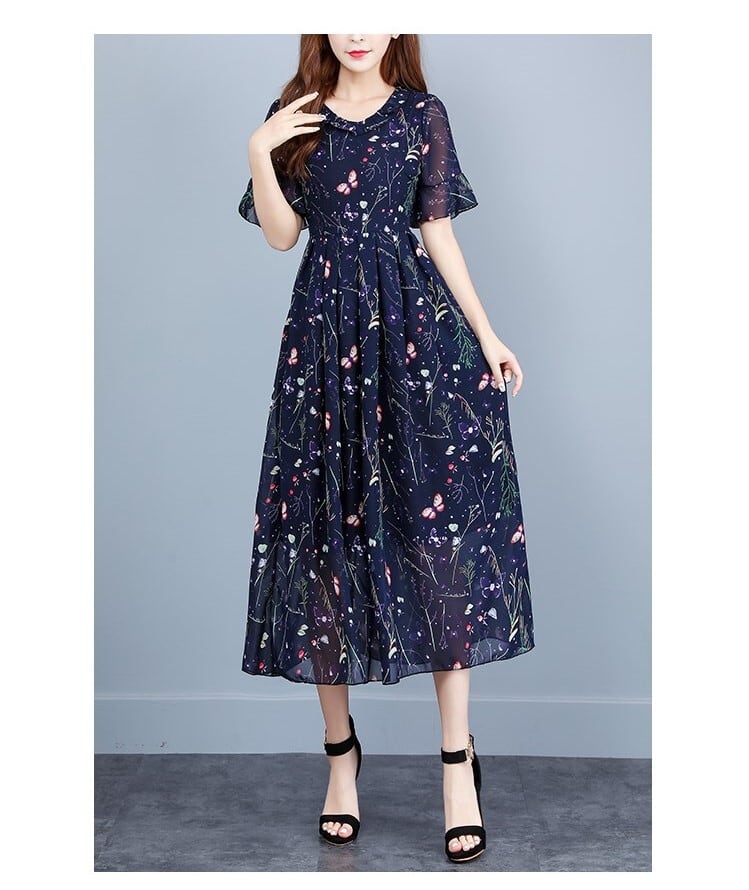 韓国風 マキシワンピース レディース 夏 ミモレ丈 シフォン 花柄 蝶 半袖 無地 シンプル 上品 韓国風 30代 40代 RB-R3-11-TK05-0039