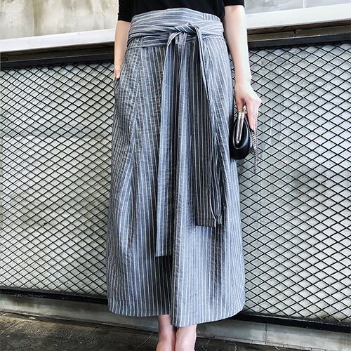 韓国風 セットアップ レディース オシャレ 五分袖 Tシャツ ハイウエスト ストライプ スカート 七分丈 2点セット 上品 夏 20代 30代 40代 くすみカラー RB-R3-19-SA05-0006