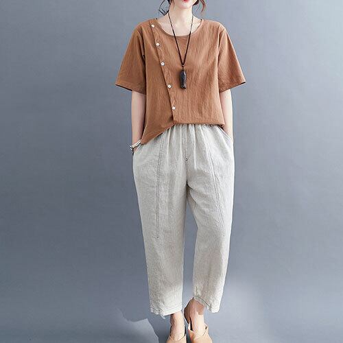 韓国風 トップス レディース 半袖 Uネック Tシャツ 無地 リネン ゆったり 大人 全3色 夏 20代 30代 40代 くすみカラー RB-R3-19-SA05-0010
